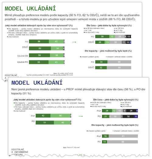 Teď to ale vypadá, že by se mohlo jednat o řešení pro všechny druhy datových schránek. A průzkum se zabýval i tím, jaké řešení by to mělo být. Zda „dle času“, a tedy na stejném principu jako dnes, jen s delší dobou než je dnešních 90 dnů. Nebo „dle kapacity“, obdobně jako dnes funguje úložiště na Portálu občana, kde je k dispozici určitý prostor (dnes 1 GB), ve kterém ty datové zprávy, které se do něj vejdou, zůstávají neomezeně dlouho.