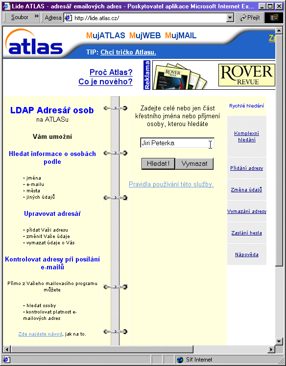 Historicky nejstarší českou adresářovou službou na principu nástěnky je adresář Atlasu. Sídlí na adrese http://lide.atlas.cz.Adresář Atlasu byl od začátku úzce integrován s dalšími službami tohoto serveru (zejména s katalogem odkazů a fulltextovým vyhledávačem). Princip jeho fungování odpovídá klasické "nástěnce", i když v pravidlech používání adresáře se doslova říká: "Uživatel souhlasí, že mohou být na tomto serveru uveřejněny informace o jeho osobě dostupné z veřejných zdrojů v souladu se zákony ČR". To je zřejmě narážka na možnost, že se v adresáři mohou objevit také údaje, které tam explicitně nezadal jejich vlastník, ale které byly získány nějakou formou "sběru" z veřejně dostupných zdrojů. Vlastník takovéto adresy pak ale vůbec nemusí být uživatelem adresáře (ani o tom nemusí vědět), takže je dosti nelogické jej k čemukoli zavazovat. Spíše by se měl zavázat provozovatel adresáře, a to k tomu, že bude s takto získanými adresami nakládat korektně - což skutečně činí, odkazem na dodržování platného zákona č. 256/92 Sb.