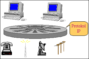 Důležité je, že jednotlivé dílčí sítě mohou být dosti odlišné - někde se jedná o rychlé a poměrně spolehlivé sítě LAN na bázi Ethernetu, zatímco jinde může jít o mnohem méně spolehlivé veřejné sítě či ještě jiné druhy sítí. Protokol IP však nad takto potenciálně různorodou soustavou vytváří jednotné přenosové prostředí - sám nabízí vždy stejné přenosové služby, bez ohledu na to, jak to funguje "pod ním", na úrovni vrstvy síťového rozhraní. Tento efekt lze připodobnit k efektu jednotné pokličky, kterou protokol IP vytváří nad jednotlivými dílčími sítěmi, a přitom zakrývá jejich specifika.