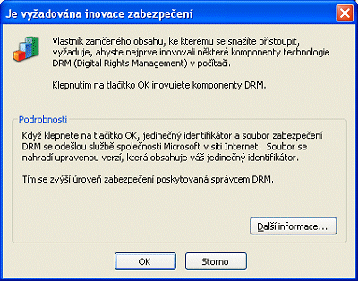 "Další informace . . ." přitom říkají, že pro stažení upgradu DRM vás počítač nejprve odešle na server Microsoft unikátní identifikátor, který Microsoft zakomponuje do upgrade modulu a teprve pak vám jej pošle, aby rozšířil vás Media Player. Příslušný identifikátor, odesílaný z vašeho počítače, by podle tvrzení Microsoft neměl obsahovat žádné "údaje, identifikující konkrétní osobu".