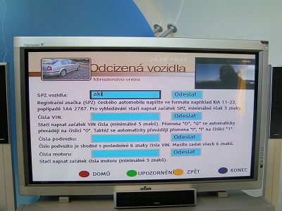 Takže to nejzajímavější při předvádění DVB-T v podání Českého Telecomu byly hlavně doprovodné služby, mezi kterými už nechybí ani skutečně interaktivní aplikace - byť jiného zaměření než při loňském představení konceptu tzv. digitální domácnosti, kde šlo spíše o IPTV než o DVB-T (a doprovodné služby byly zaměřeny hlavně na email a ecommerce). Nyní šlo hlavně o informační služby a zábavu - třeba o hlasování v hitparádách stanice Óčko, nebo o hledání v databázi odcizených vozidel (viz následující obrázky).
