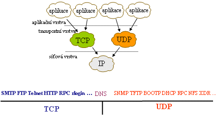 - protokol UDP (User Datagram Protocol): je pouze jednouchou nadstavbou nad protokolem IP a funguje stejně jako on (tj. nespojovaně a nespolehlivě)