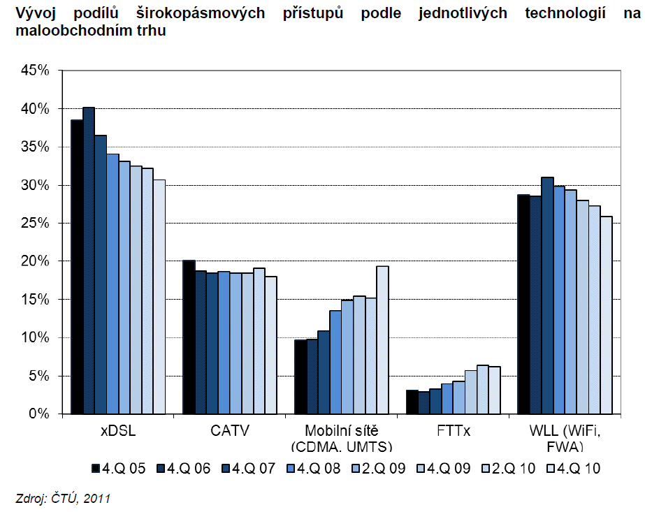 Zkusme si to srovnat s tím, co nedávno ohlásil ČTÚ ve své Zprávě o vývoji trhu elektronických komunikací za rok 2010: